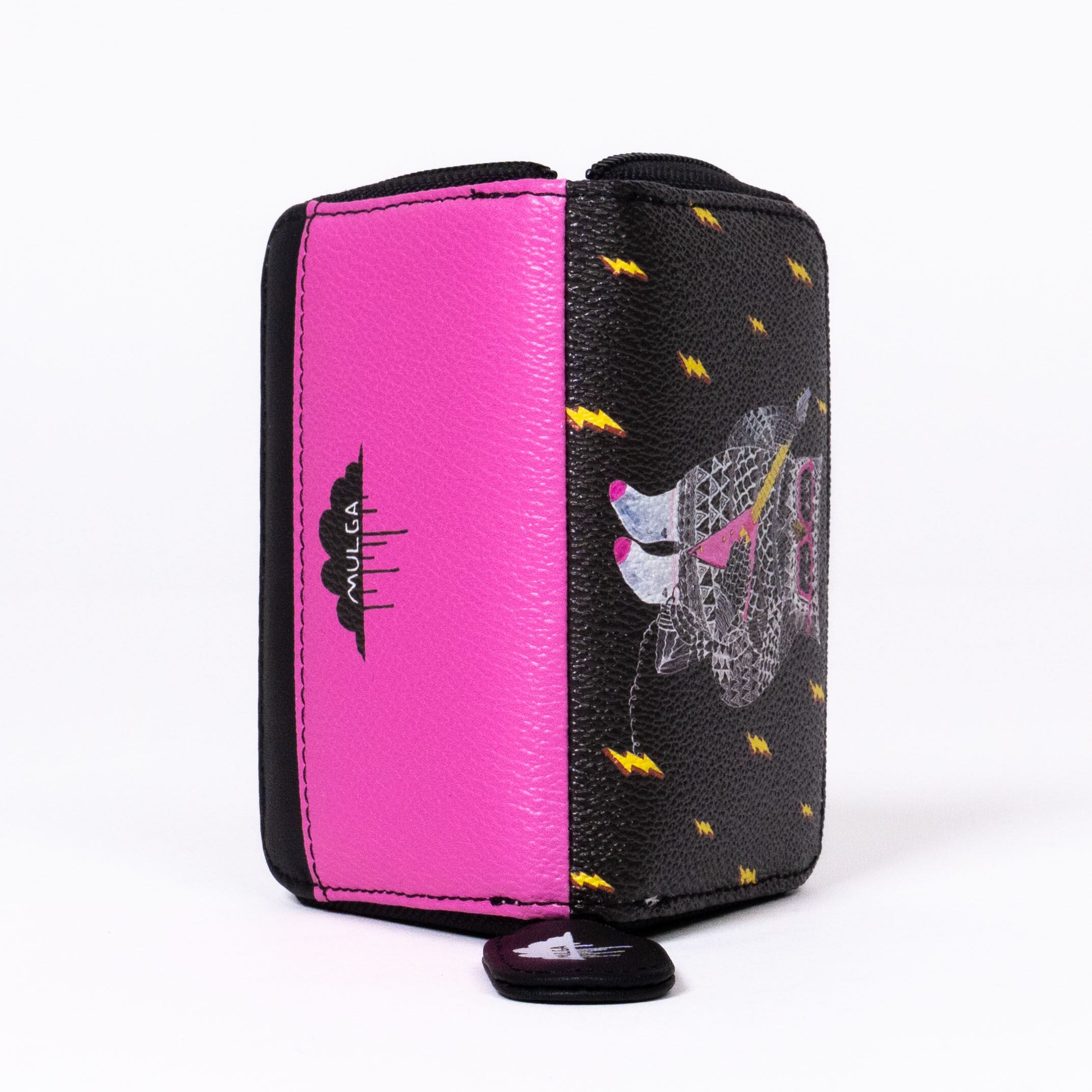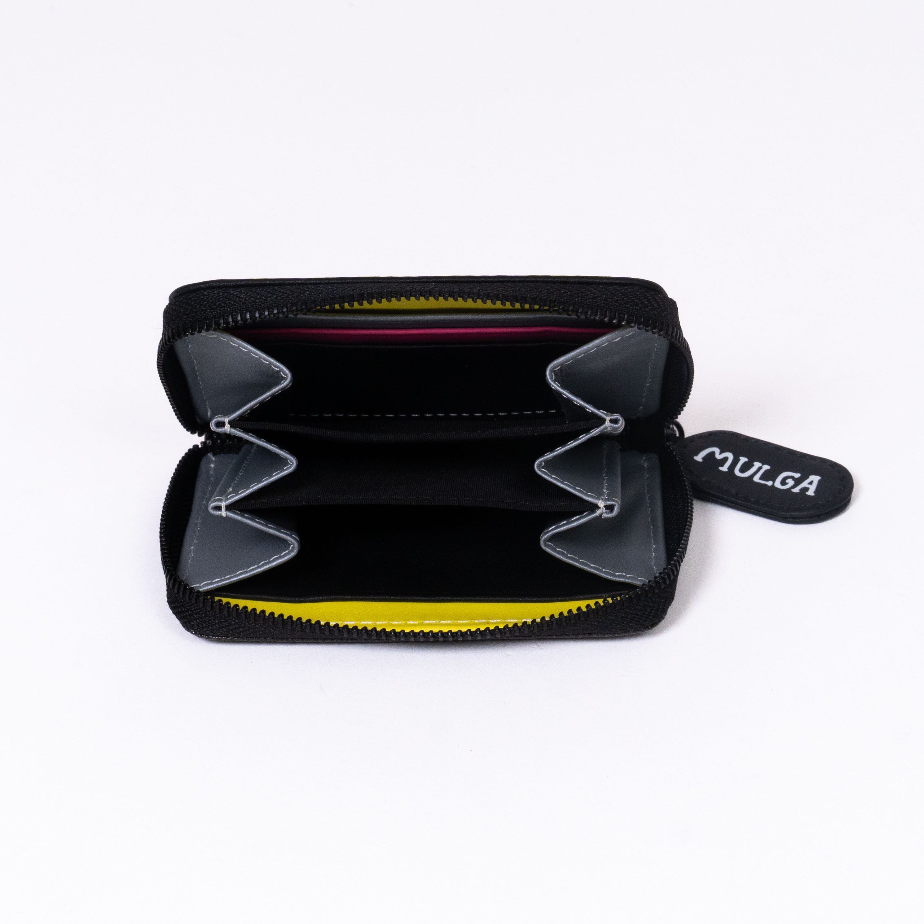 アウトサイドにはMULGAのアートを全面に、インサイドにはカラフルな牛革をセレクト。