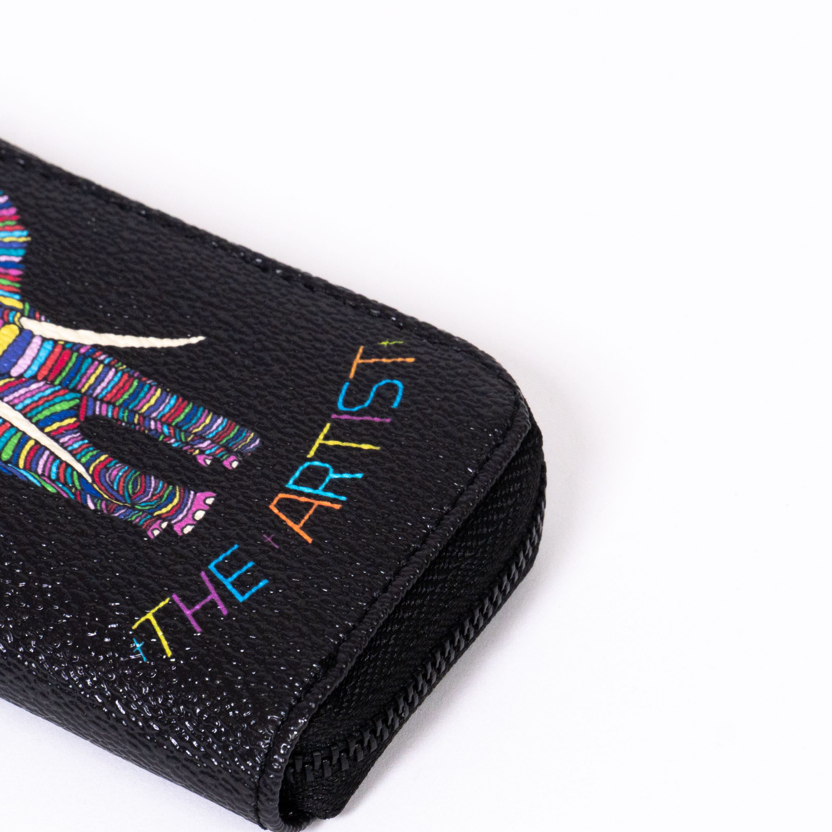 アウトサイドにはMULGAのアートを全面に、インサイドにはカラフルな牛革をセレクト。