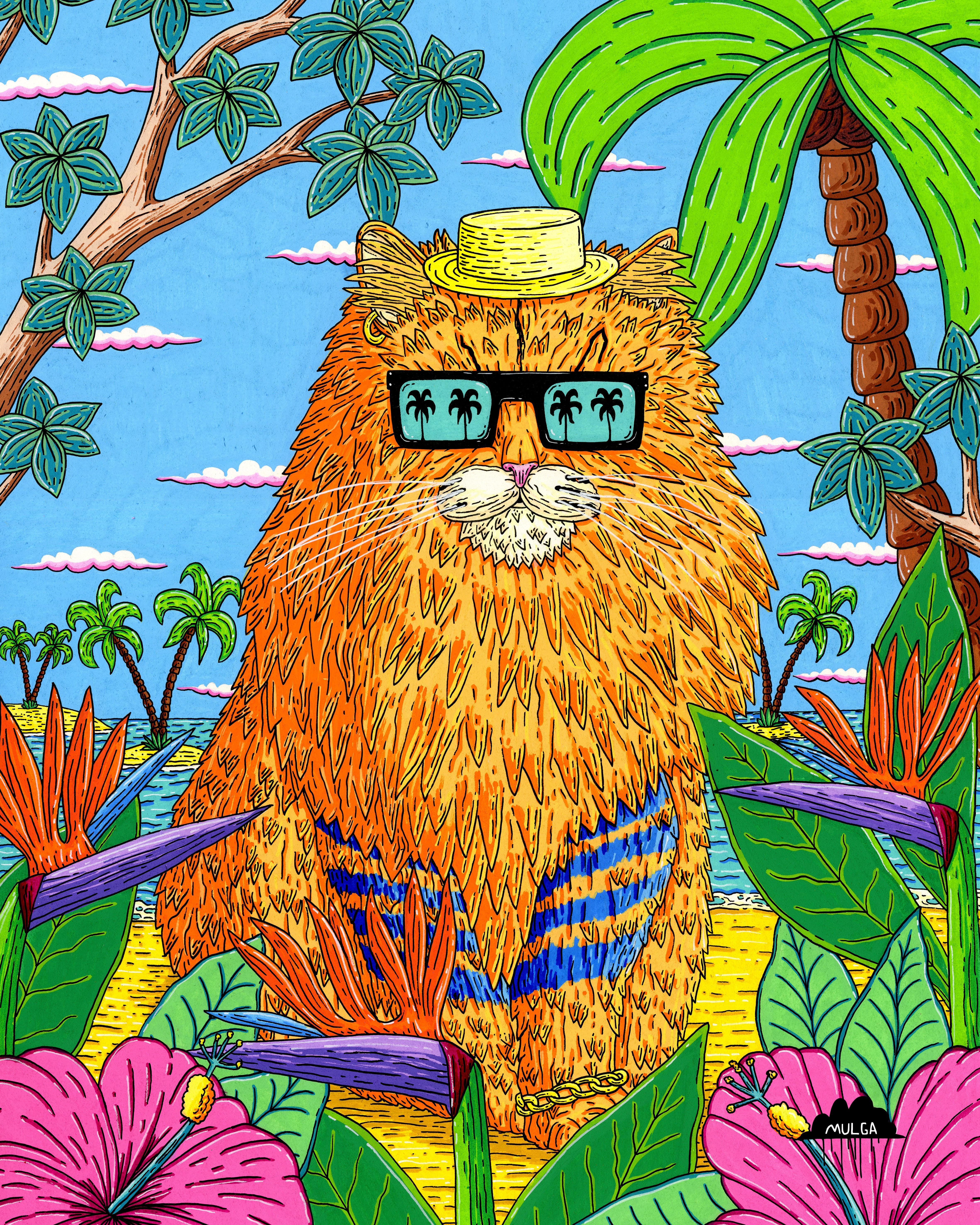 Once there was a cat called Elle and he was the fluffiest cat on the block. In addition to being mad fluffy he was super funky and was a singer in a band called Elle and the Funky Cats. They played funk tunes and everyone would always dance when they played their music. One time they played at a street party and they had to stop because their grooves were too infectious and everyone who could hear the tunes couldn't help but dance and mayhem ensued everywhere. But there was this other cat called Lala the Cat and she was Elle's sister and the funky tunes seemed to just make her angry and when she heard them she threw tomatoes at Elle. Siblings hey.